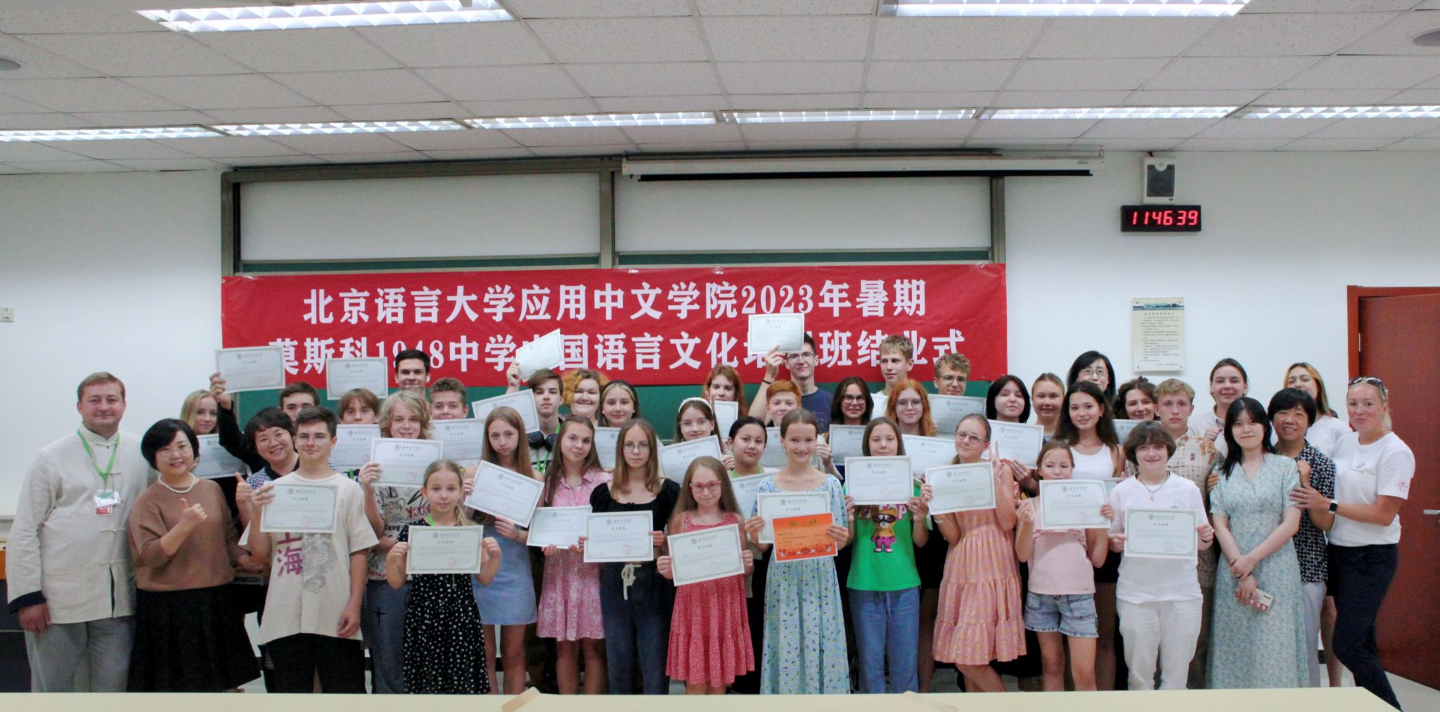 2023年莫斯科1948和1329中学暑期项目在北语教三楼举行结业典礼,来自莫斯科1948中学的35名学员及1329中学的45名学员圆满完成了一个月的中文学习和中华文化体验课程,收获满满。