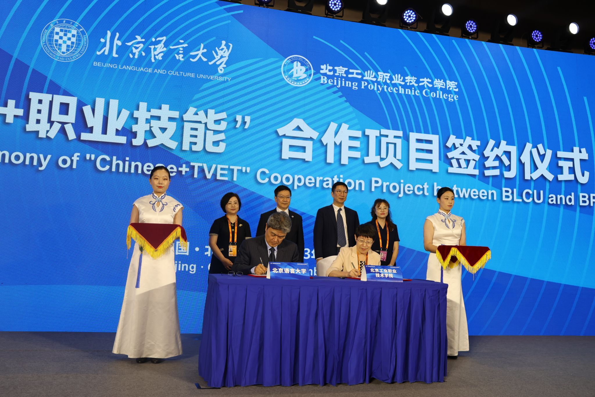 与北京工业职业技术学院签署了“中文+职业技能”项目合作协议。