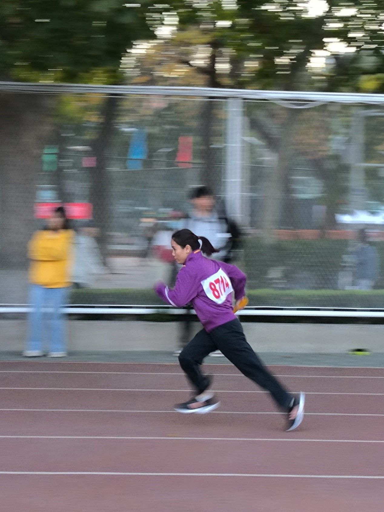 开幕式结束后,比赛正式开始。赛场上,同学们奋力拼搏,勇于争先,他们挥洒魅力,赢得了属于自己的阵阵掌声和光荣时刻。在广阔的跑道上,参加女子短跑100米的同学们心无旁骛,她们在起跑线前蓄势待发。当裁判手持发令枪发出指令的那一刻,同学们仿若离弦之箭冲向终点,其中郭子超和卢泽萍同学在各自小组中名列前茅。在女子800米比赛中,罗红和熊晓同学每分每秒都在与时间赛跑,在体力的消耗中与自己对抗。此时此刻,她们是跑道上最绚丽的光。在同学们热情的助威声中,熊晓同学加快了速度,一步又一步,每一步都是巨大的跨越,在第二圈的追逐中,她从末尾冲刺到了前三!作为一匹“黑马”,熊晓同学成功战胜了自我,真正地展现了青春的意义在于自强不息、顽强拼搏。参加女子跳远的同学们也在一阵阵的鼓舞声中陆续进入助跑赛道,一个接着一个起跳、腾空、落地,她们的双臂在空中留下一道完美的弧线,动作一气呵成。对她们而言,这一跳就是持续地超越自我、肯定自我。转眼看去,参加铅球运动的同学已准备妥当,他们稳稳站定、手托铅球、转身、推臂、抛球,动作连贯,一气呵成,他们用尽自己的全力将手中的铅球投掷到了最远处。对他们来说,铅球承载了他们的梦想,投掷的长度是无法丈量的。铅球项目结束后,姚瑶同学、冯继萱同学分别取得女子铅球第一名、女子铅球第三名的优异成绩。比赛进入末尾,2DFan 的运动健儿们早已商量好“女子4×100米接力赛”的决策。“叭!”发令枪一声令下,她们手持接力棒,全力奔跑在属于自己的100米中,每一次接力棒的交接,都传递着希望,她们每一次奋力奔跑留下的脚印,都是在超越着极限。她们,眼神凝聚在前方队友所伸出的手,推动她们的是队友热切的目光与期望。让我们感谢这个小团队,她们是2DFan 势如破竹、锐不可当、勇往直前的写照。
