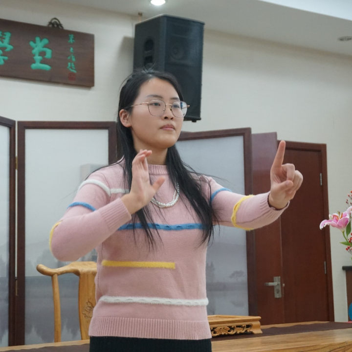 品茗结束以后,黄茜怡和郭子超同学为大家演唱了歌曲《love story》,将此次活动推动到了高潮。在主持人的带动下,进入到了“你比划我猜”游戏环节,多位同学在阵阵欢声笑语中不亦乐乎。在活动的尾声,张菊萍和崔榆崧两位同学分别展示了手语舞《明天,你好》和笛子独奏《龙的传人》。最后,在《南锣鼓巷》的祝福音乐中,大家一起在活页册上留下专属于2024年的新年祝福。