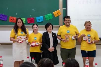 院长、中华文化国际传播中心主任苏英霞、院务办公室主任陈军、教师代表余绮、黎佳欣等与来自墨西哥和泰国的营员们欢聚一堂,共同庆祝春令营活动圆满完成。闭营仪式由汉语桥项目主管魏耕耘主持。
