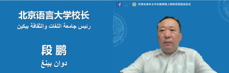 苏英霞院长、周鑫书记、张晓明副院长等出席了结业式,授课教师代表岳岩副教授主持了结业仪式。段鹏校长对沙特未来本土教师线上培训项目取得的效果予以充分肯定,对学员们取得的优异成绩表示祝贺,张宝钧副校长对学员们的勤奋与坚持给予了高度评价,苏英霞院长在致辞中讲到,2DFan