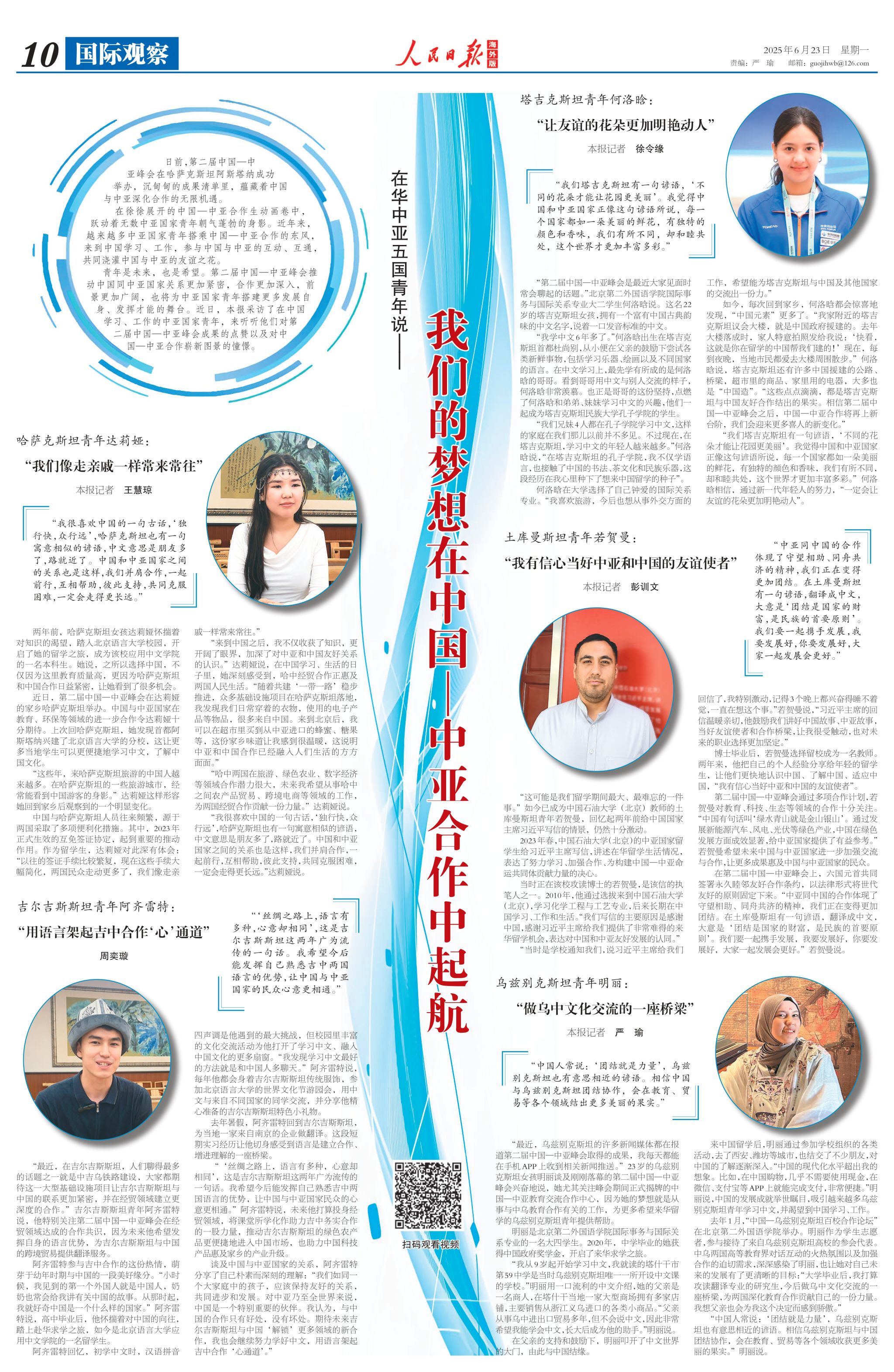 青年是未来,也是希望。第二届中国—中亚峰会推动中国同中亚国家关系更加紧密,合作更加深入,前景更加广阔,也将为中亚国家青年搭建更多发展自身、发挥才能的舞台。