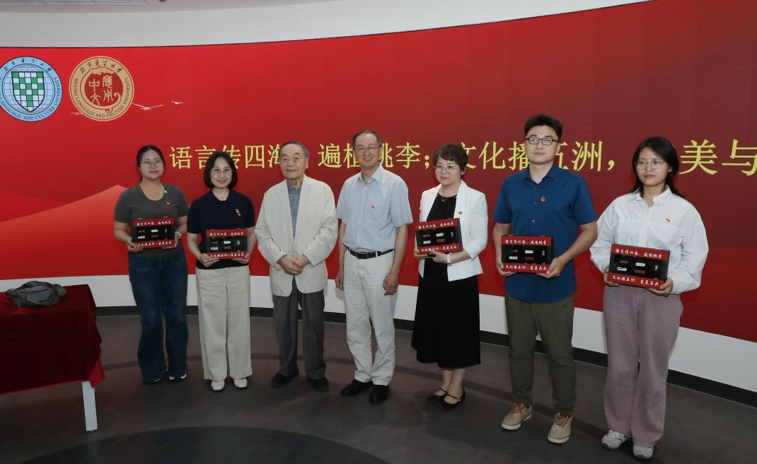 本次活动老中青三代汉教人齐聚一堂,魏晖副书记和刘珣教授为学院教师代表及汉语国际教育专业研究生代表颁发了北语建校以来所有的校徽,寓意是把老一辈国际中文教师的教育家精神一代代传承下去,并勉励所有国际中文教师都向刘老师学习,努力做到“语言传四海,遍植桃李;文化播五洲,美美与共”。
