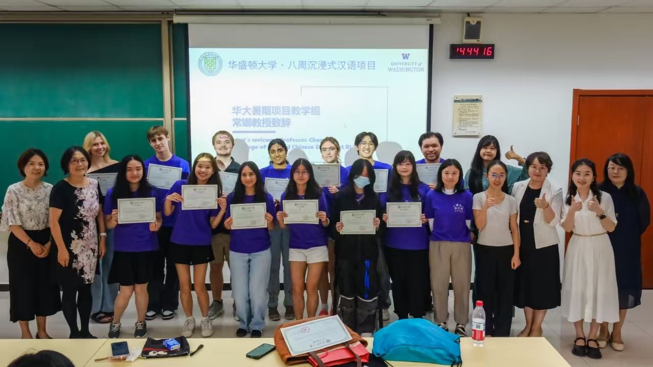 图七:华盛顿大学暑期中文项目二年级颁发证书合影