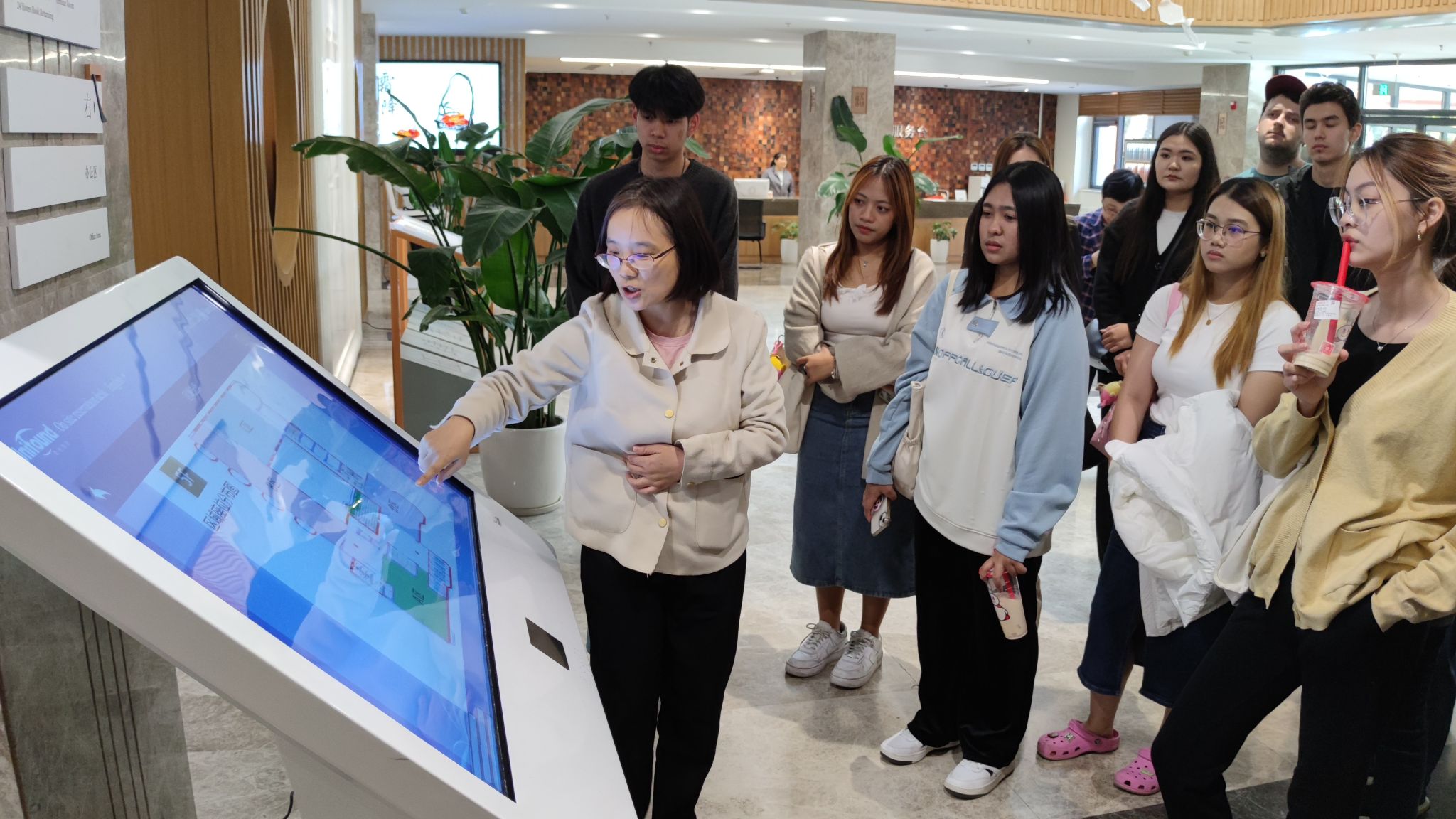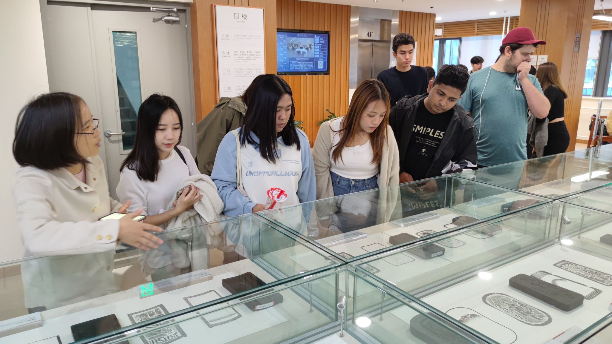 图书馆参考咨询部的何玲老师带领同学们全面熟悉图书馆的结构布局、功能分区,现场演示预约座位和研讨间、精确检索图书、利用电脑查阅下载图书馆电子资源的流程和方法,并带领同学们参观了位于四层的中华传统文化体验砚台展。北语图书馆先进而人性化的功能设计给同学们留下了深刻的印象。