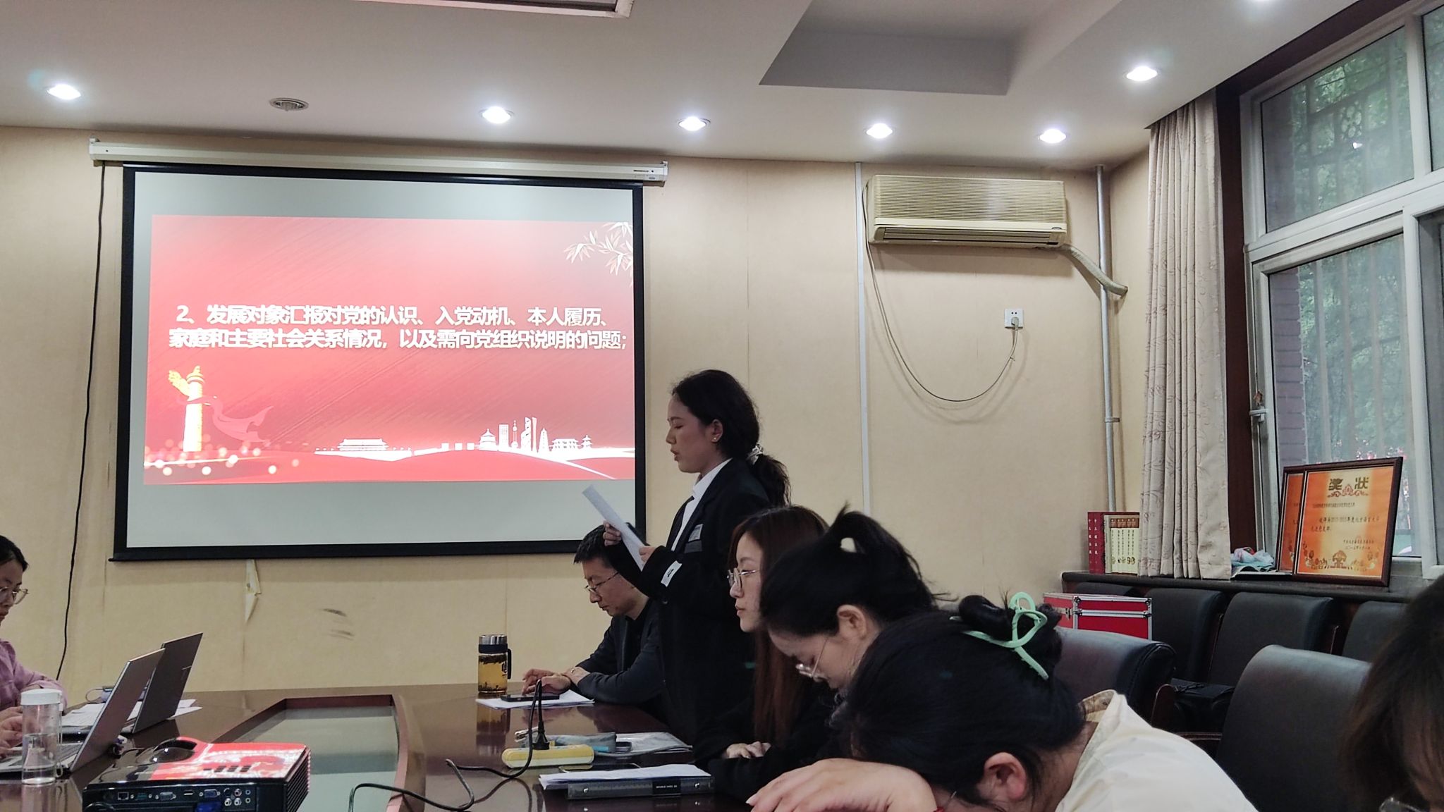 在听取了发展对象的汇报后,入党介绍人徐牧渊、罗红、张菊萍分别介绍了三位同志的基本情况,并对他们的入党申请表达了坚定的支持。紧接着,支部委员徐牧渊向大会报告了对发展对象的审查情况。