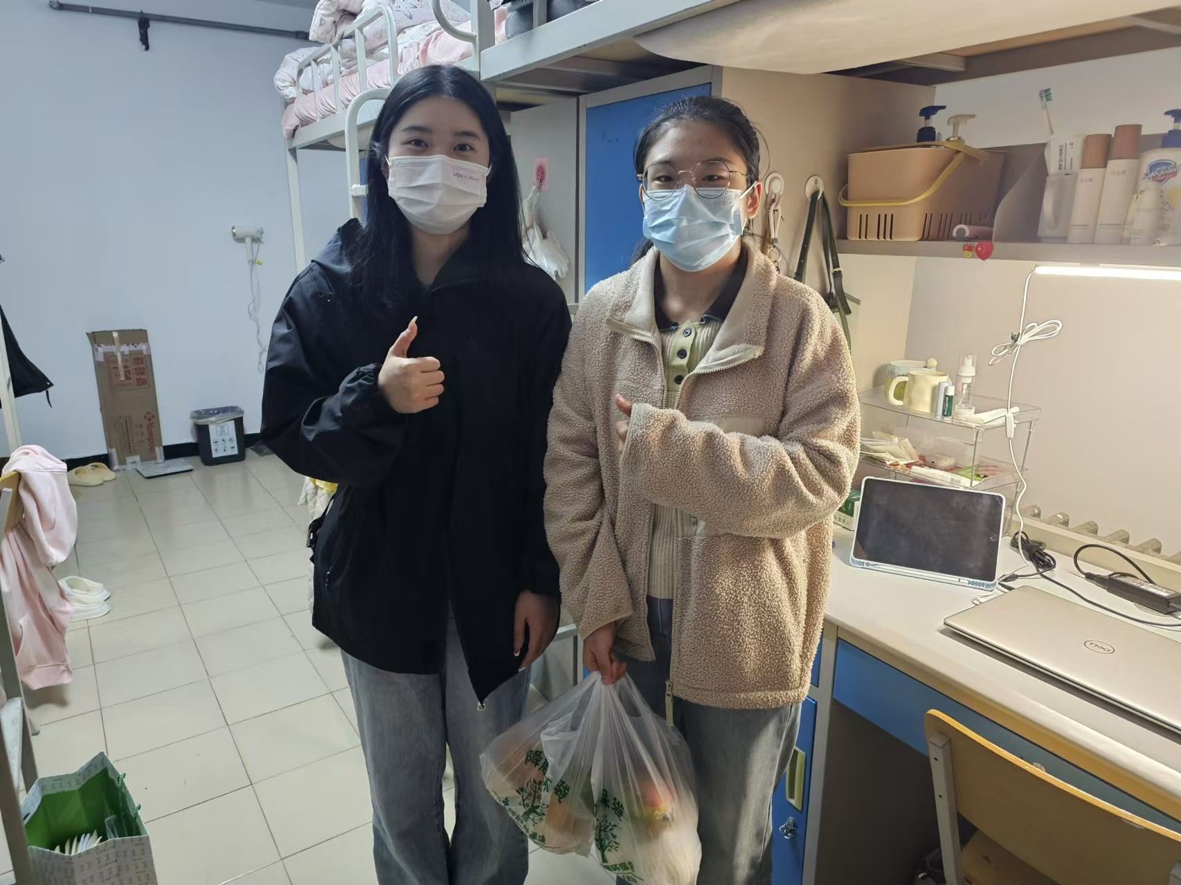 随后,在得知研一同学魏筱雨因生病错过了集体活动后,研一班委朴善花也受托来到魏筱雨的宿舍,了解她的病情和治疗进展,并鼓励她保持乐观态度,注意休息。这份来自集体的支持,让魏筱雨感受到了前所未有的温暖,也加深了她对学院及党组织的归属感。