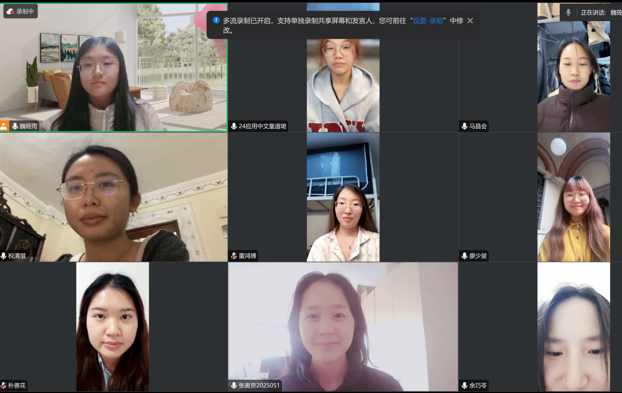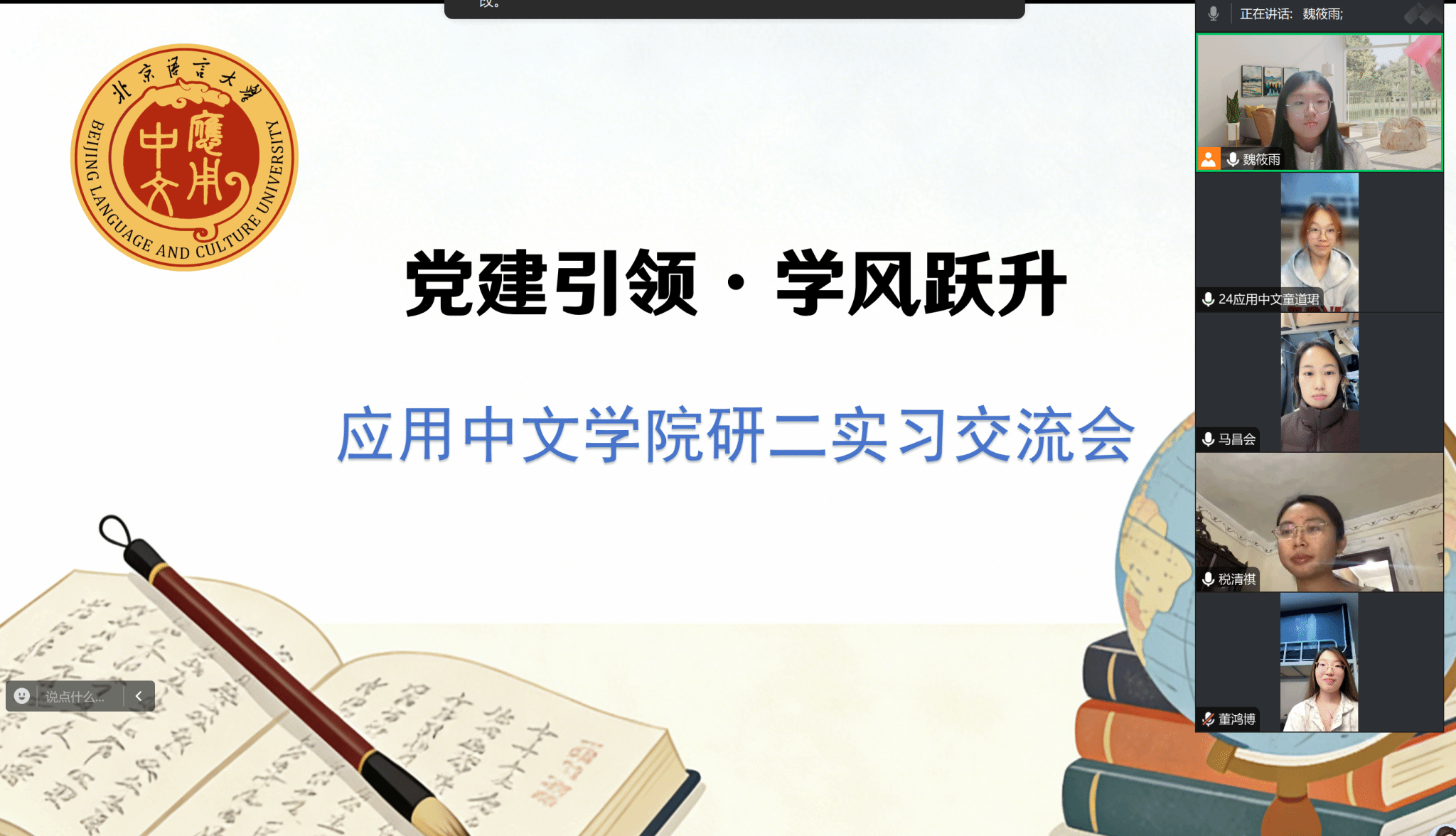 本次“全球连线”交流是学院学风建设“榜样激励”与“学业互助”环节的创新实践,既展现了研究生“乐学、勤学、善学、共学”的精神风貌,也为培养兼具理论素养与实践能力的高端国际中文人才积累了鲜活案例。学院将持续推进学风建设走深走实,为研究生成长成才提供有力支撑。