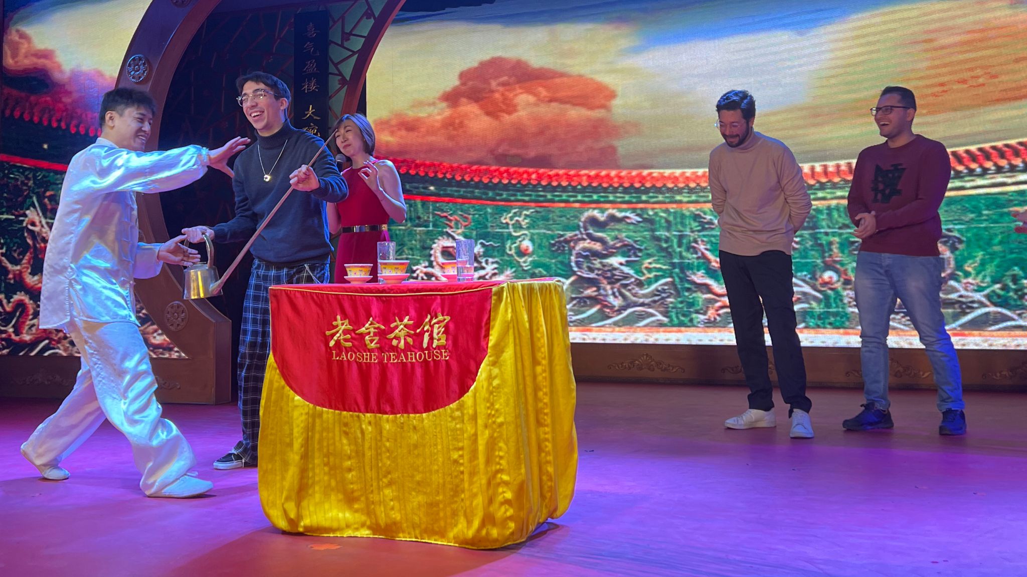 为丰富学生们的学习生活,12月5日上午,2DFan 组织近300名国际学生前往老舍茶馆进行文化体验活动。在寒冷的北京冬季,同学们尽情享受了一场热情洋溢的文化盛宴。