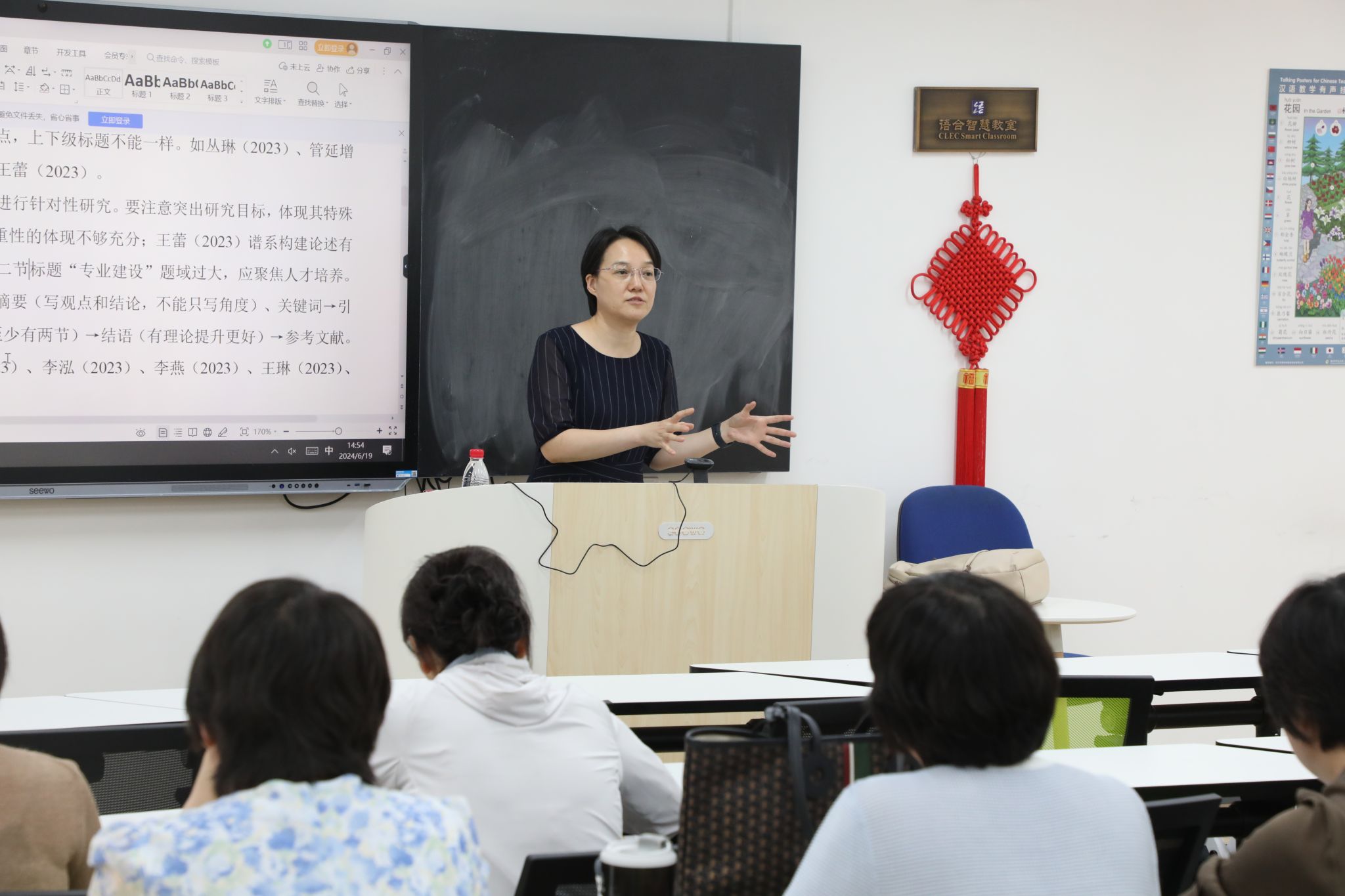 在教五楼智慧教室举办了春季学期科研沙龙。本次沙龙特邀《世界汉语教学》编辑部孟凯研究员作为主讲人,对学院2023年度科研报告会一、二等奖论文进行评析。沙龙由2DFan