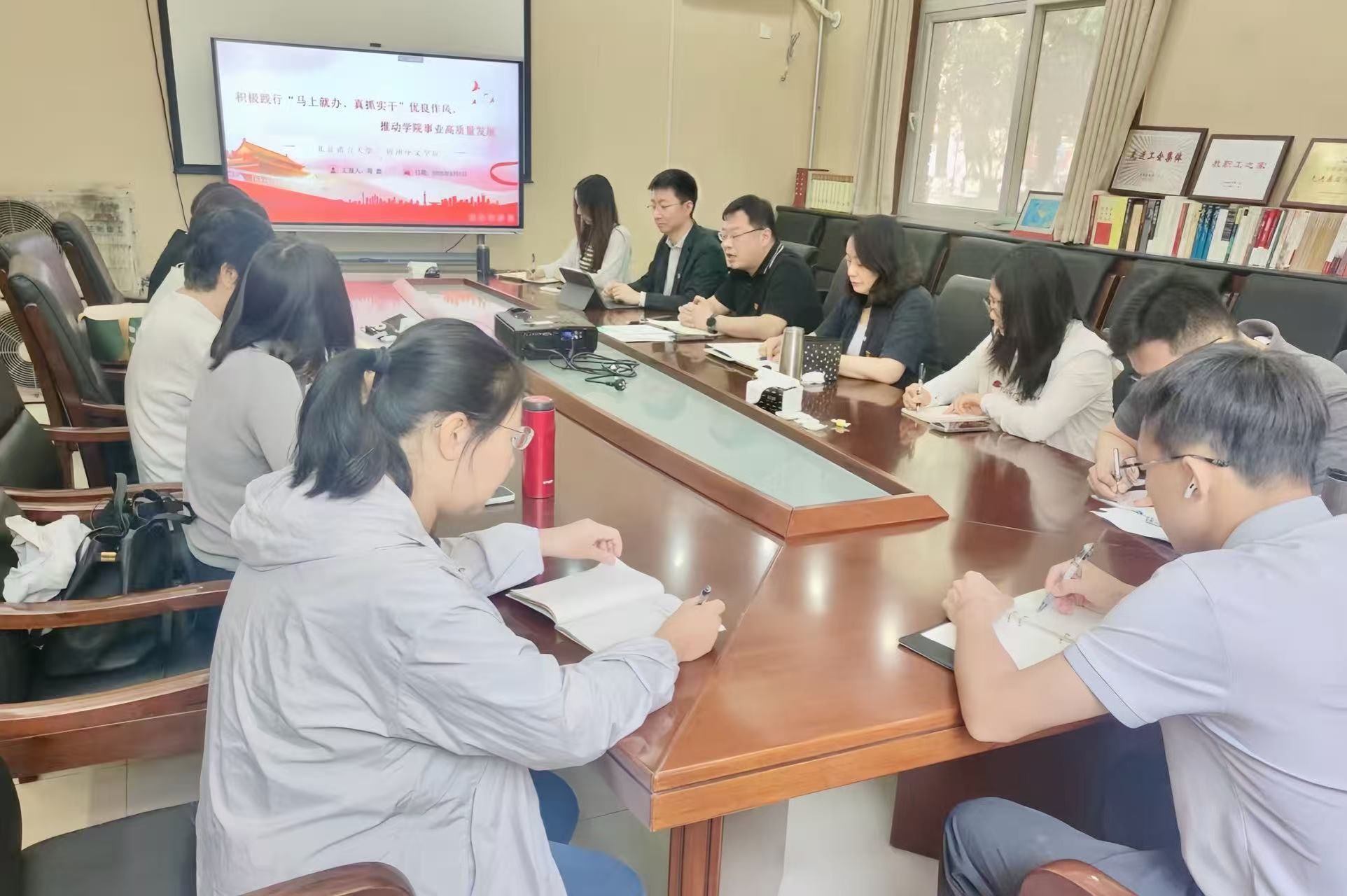 党委书记周鑫在124会议室,以“积极践行‘马上就办、真抓实干’优良作风,推动学院事业高质量发展”为题讲授专题党课。学院领导班子成员、党委委员、纪委委员、各党支部书记及办公室负责人参加学习。